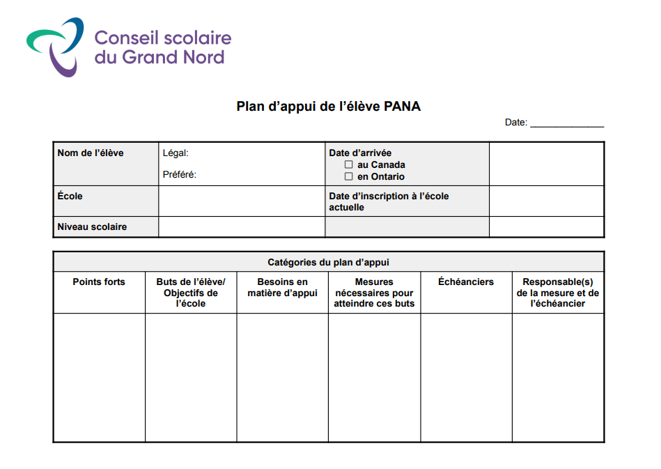Consultez cet exemple de plan d’appui de l’élève élaboré par le Conseil scolaire du Grand Nord.